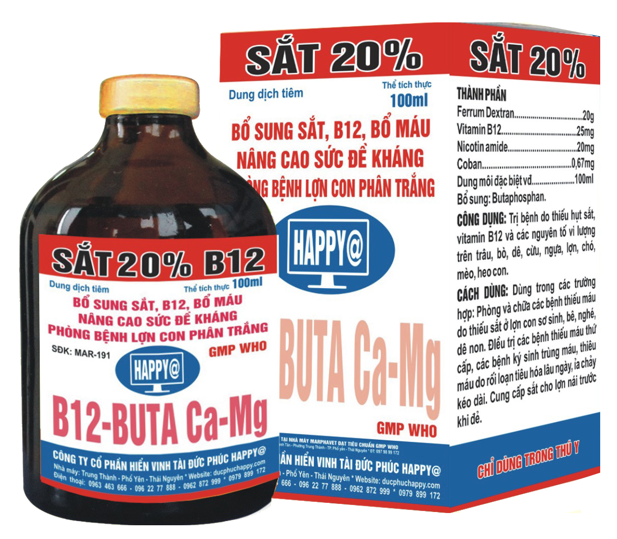 CÔNG DỤNG: Trị bệnh thiếu máu do thiếu hụt sắt, vitmain B12 và các nguyên tố vi lượng trên trâu, bò, dê, cừu, ngựa, lợn, chó, mèo, heo con. Điều trị các bệnh thiếu máu thứ cấp, các bệnh ký sinh trùng máu, thiếu máu do rối loại tiêu hóa, lâu ngày, ỉa chảy kéo dài. Cung cấp sắt cho lợn nái trước khi đẻ.